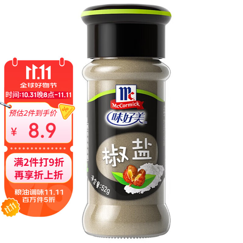 味好美(McCormicK)香辛料调料 椒盐 52g 玻璃瓶装 烧烤烹饪调味料 百年品牌