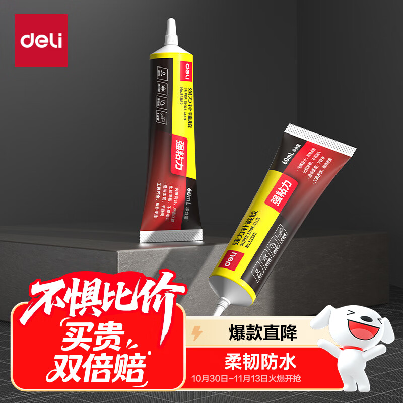 得力(deli)【超级爆款】补鞋胶水 粘鞋专用强力胶 无痕胶透明防水不泛白 皮鞋篮球鞋脱胶修补 60ML/支 53582