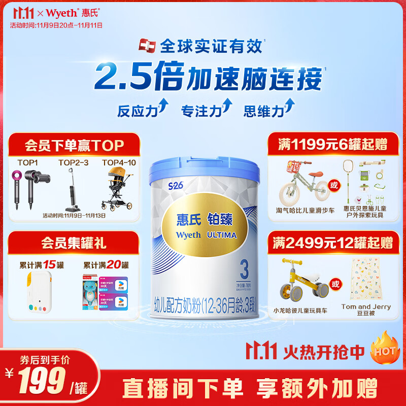 惠氏(Wyeth)铂臻进口DHA幼儿配方奶粉3段(12-36月)780g