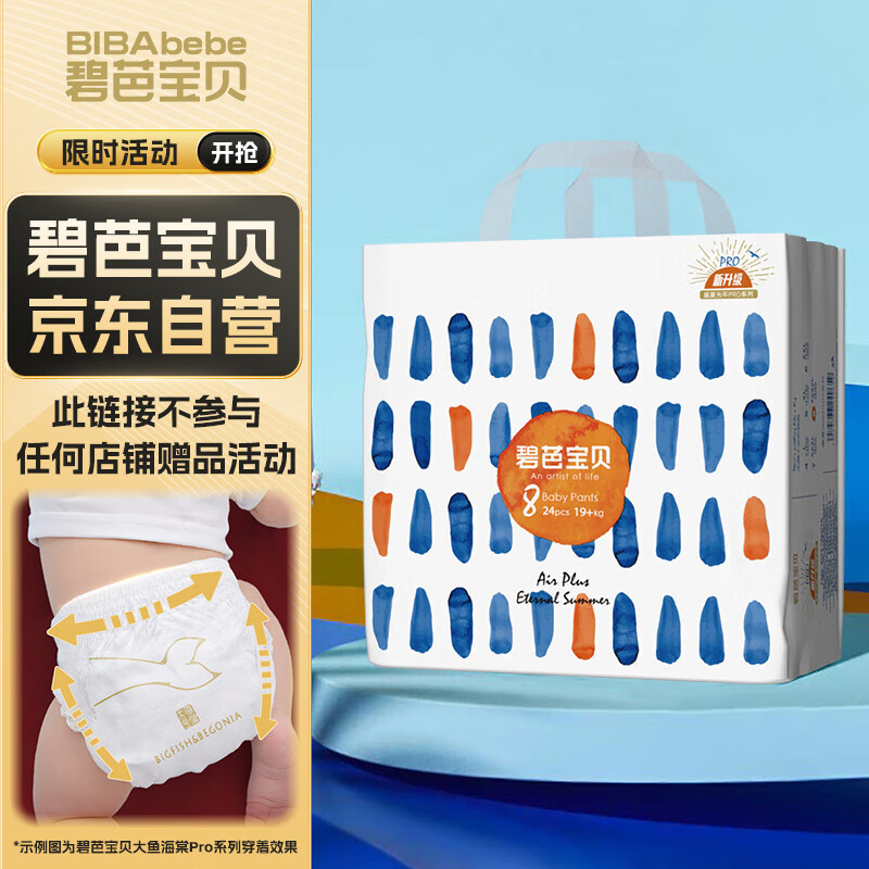 碧芭宝贝盛夏光年拉拉裤XXXXL24片(19kg以上)加大尿不湿 超薄超柔透气
