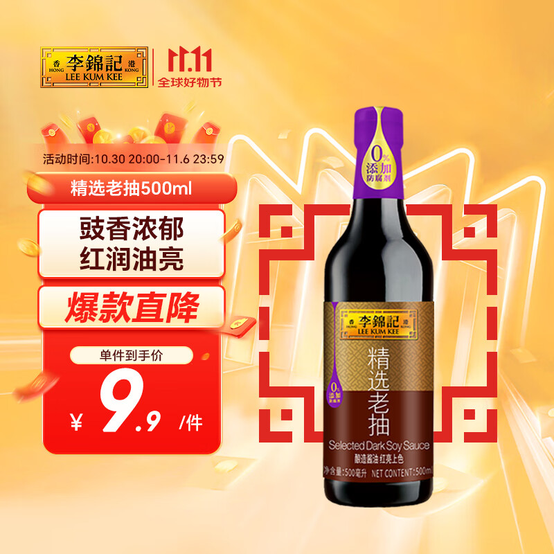 李锦记 精选系列 精选老抽500ml【一级】0添加防腐剂 专业红烧 酿造酱油