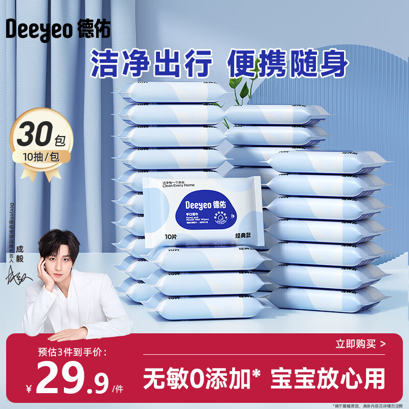 德佑婴儿手口湿巾 宝宝湿纸巾便携小包10抽*30包 幼儿园便携出行湿巾