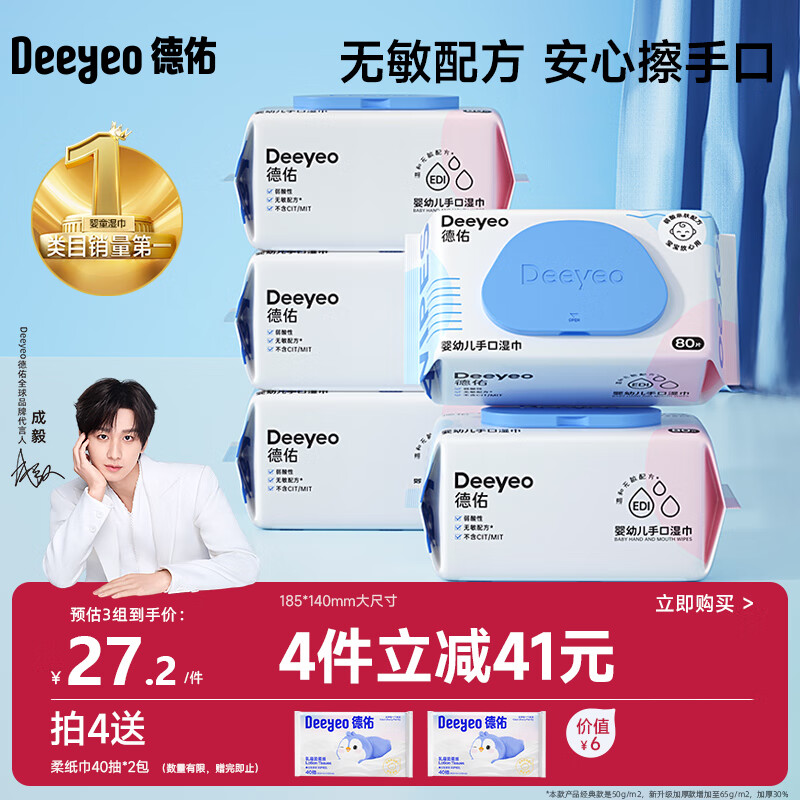 德佑婴儿手口湿巾 儿童湿纸巾擦手口屁屁亲肤温和 80抽*5包
