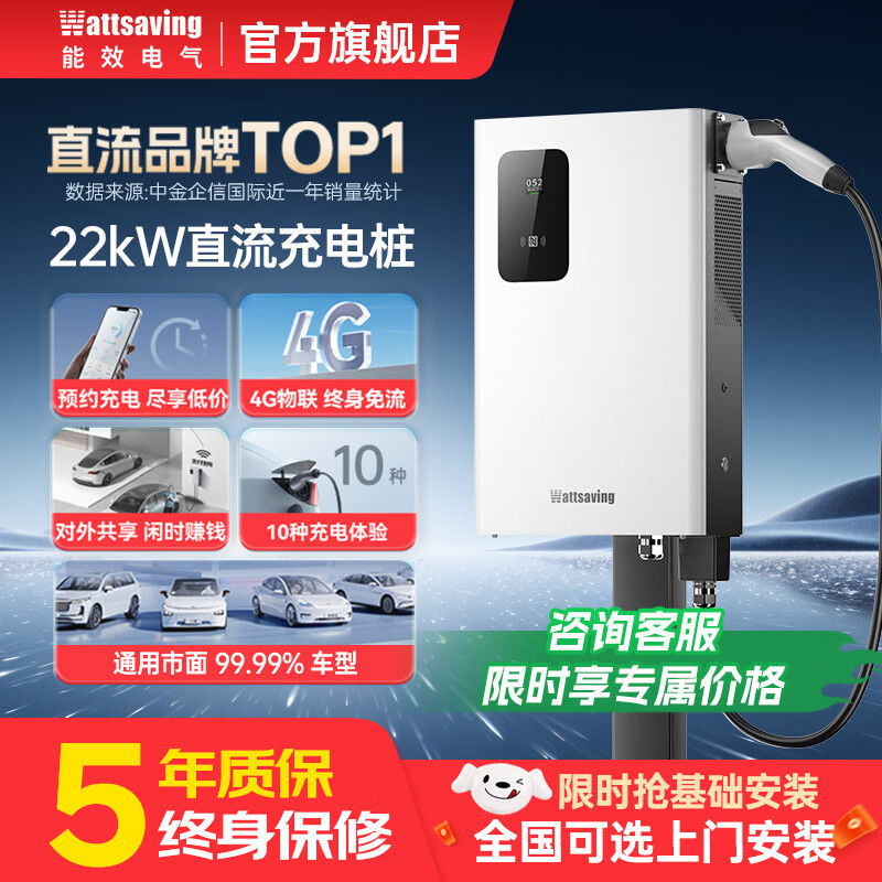 Wattsaving能效电气20kw 21kw 22kw九孔直流充电桩新能源汽车家用380V快充适配于红旗EMQ5蔚来特斯拉 智享版
