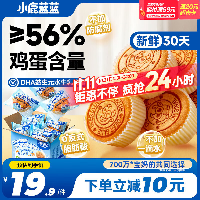 小鹿蓝蓝儿童吐司DHA益生元水牛乳嫩蛋糕宝宝早餐零食面包298g源头直发
